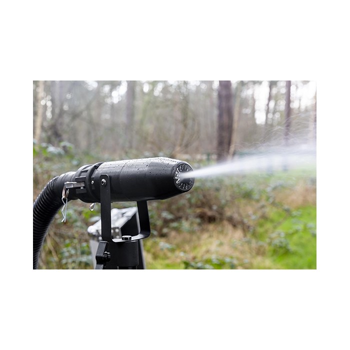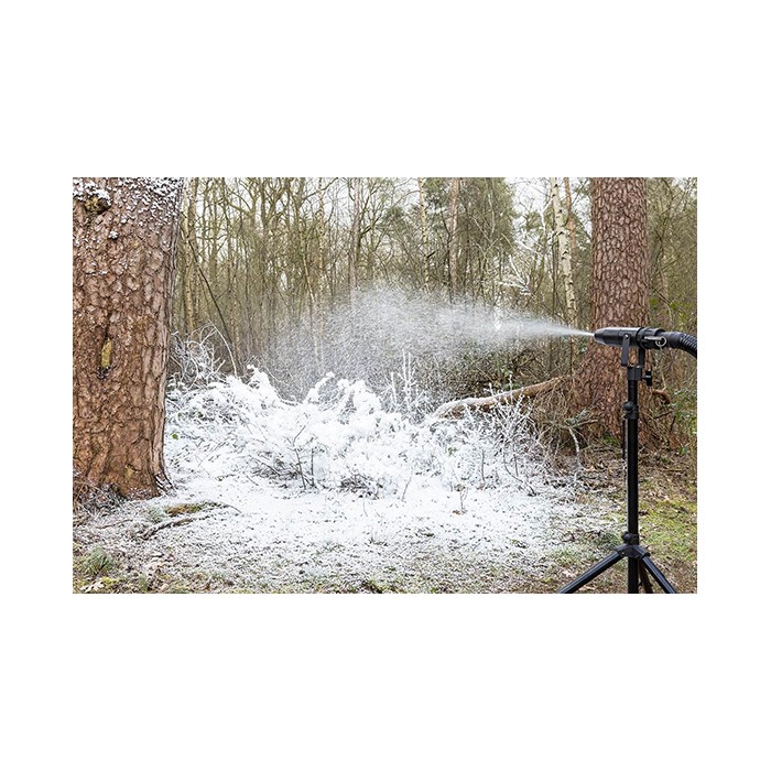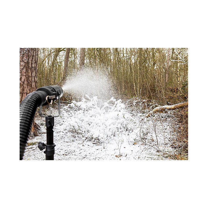 L'air et la neige sont acheminés via la buse fixée à un tuyau de 10 m, où le débit d'air et le débit de fluide peuvent être ajustés pour obtenir des effets de neige parfaits
