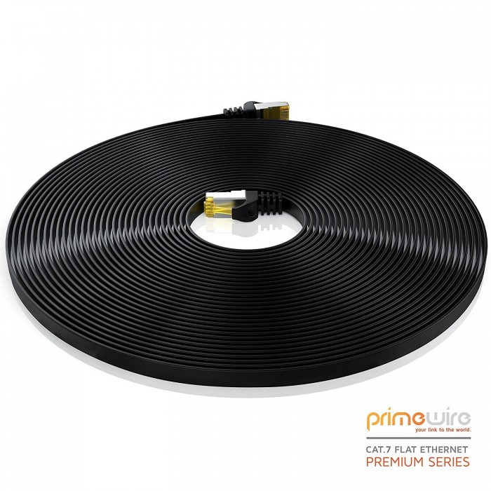 Primewire - 10,0m ( mètres ) Plat CAT.7 câble ethernet | câble patch | 2x fiches RJ-45 mâle | fiche avec manchon anti-pli | couleur: noir
