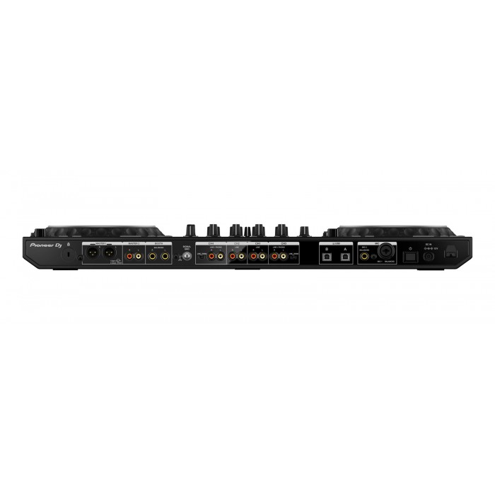 Ce contrôleur offre un maximum de flexibilité avec 4 entrées, ce qui permet d'y brancher des CDJ ou platines vinyles analogiques et de l(utiliser comme une table de mixage autonome. Une sortie cabine, 2 sorties Master et 2 entrées Micro permettent de brancher directement un équipement PA professionnel.