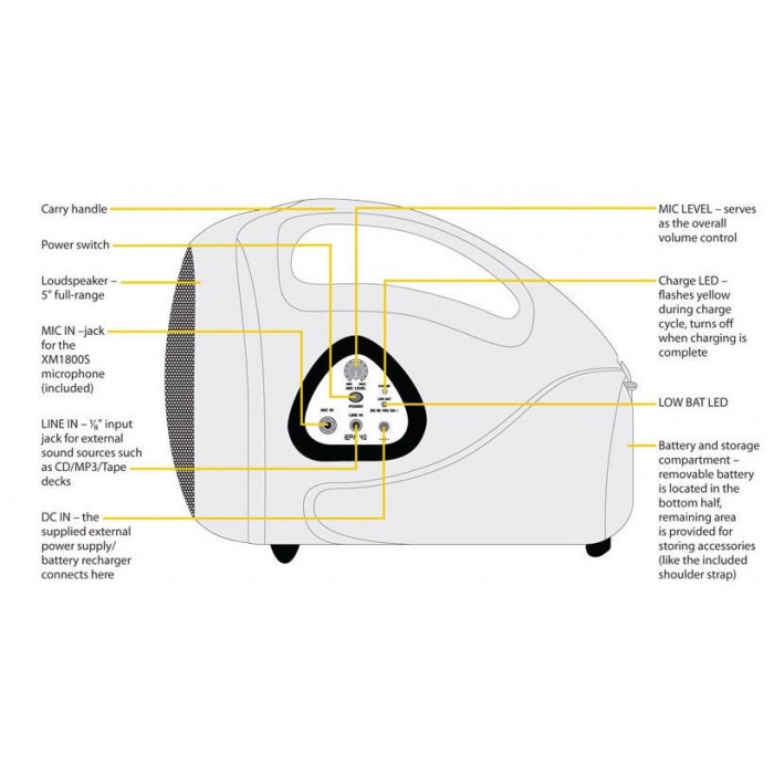 Enceinte porte voix mobile 5" Batteries rechargeables jusqu'à 8 heures d'autonomie