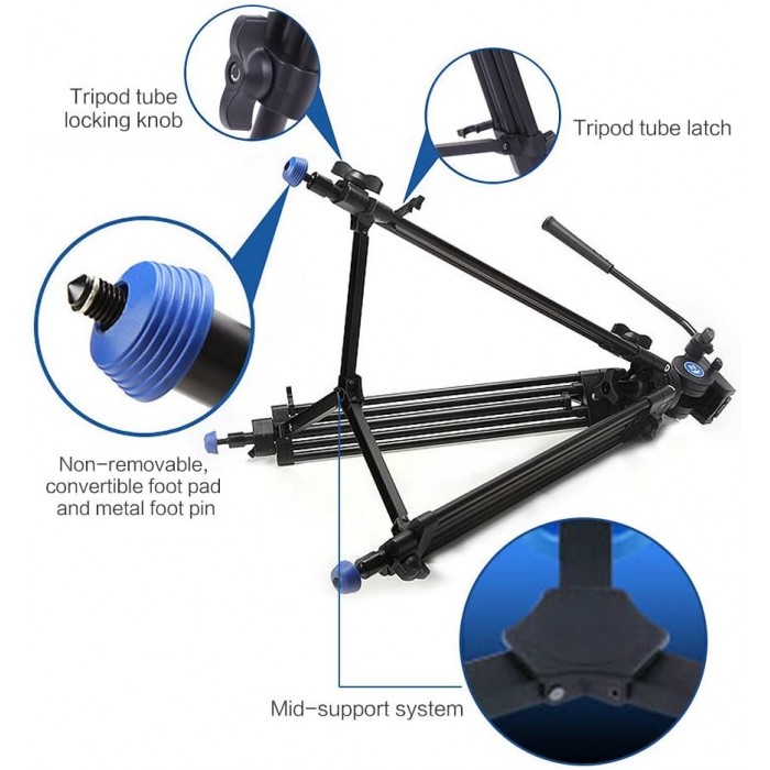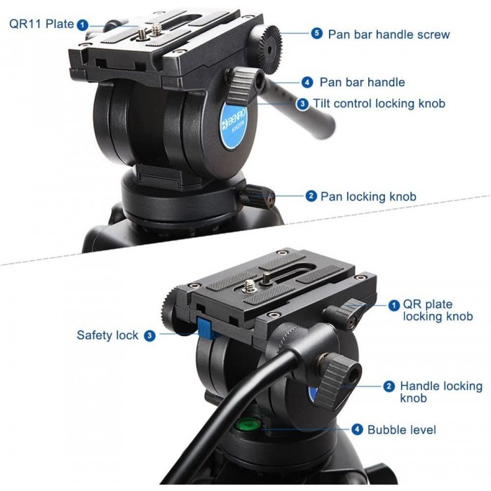 Ce trépied dispose d’un système de verrouillage des jambes amélioré, ainsi qu’une tête avec panoramique et inclinaison fluide amélioré.