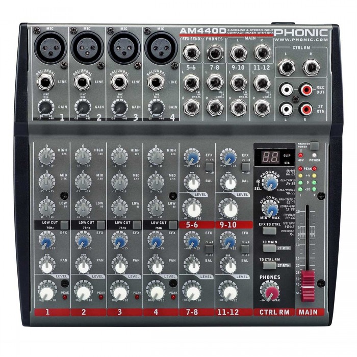 - Processeur de multi-effets numériques stéréo (DSP) 32/40bit avec 100 programmes (incluant tonalités de test et bruit rose) + Tap Delay. Sélecteur de programme EFX, contrôle de volume d'effets et inter d'envoi EFX vers CTRL Room, indicateur de saturation de niveau d'EFX.