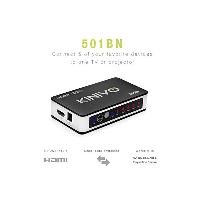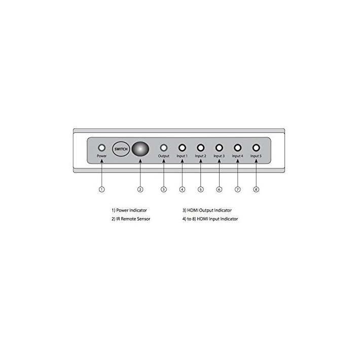 Permet de connecter 5 sources HDMI haute vitesse sur un seul port. Comprend un adaptateur secteur.